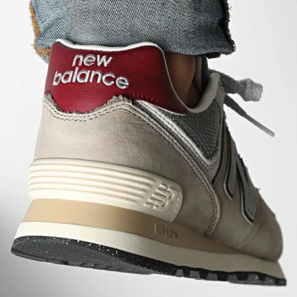 U574SKB de New Balance en finos tonos grisáceos con detalles en burdeos.