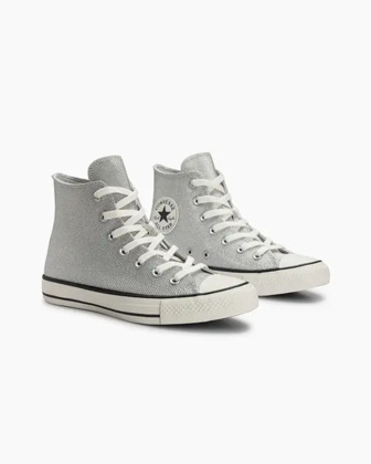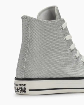 El color plata se impone en una versión impactante, con una textura con punta de diamante que refleja sofisticación en cada detalle. El diseño de caña alta alarga la silueta y le aporta un toque de personalidad inmediato, mientras que el acabado metálico transforma la zapatilla en una pieza clave de moda. Una pieza que marca tendencia: desde looks básicos hasta conjuntos glamurosos, siempre impactante.