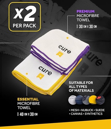 EFICIENCIA DE DOBLE TAMAÑO: El paquete incluye toallas premium (30 x 30 cm) y esenciales (40 x 30 cm), cada una diseñada para necesidades de limpieza específicas, lo que proporciona una solución integral para los entusiastas de las zapatillas.